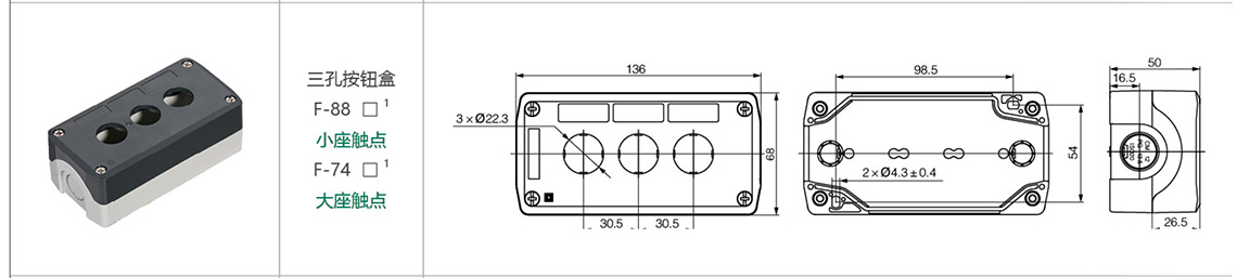 F-88/F-74三孔按鈕盒